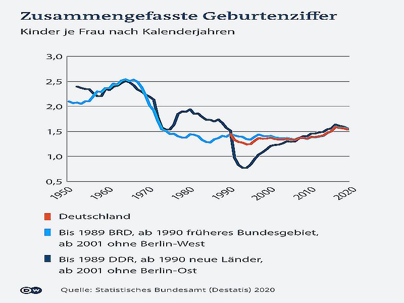 "Der Anstieg der Geburtenrate in Deutschland seit 2010 ist eine Erfolgsgeschichte," sagt er der DW. "Er ist entscheidend auf die Verbesserung der staatlich subventionierten Kinderbetreuung zurückzuführen. Der Anteil der Kinder in Kindertagesbetreuung bei unter 3-Jährigen lag im Jahr 2007 meist noch bei unter 10 Prozent, inzwischen hat er sich verdreifacht."