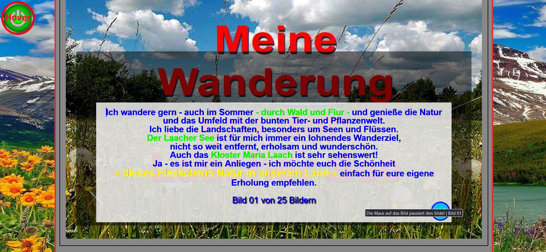 Ich habe die Menüs neu gestaltet und mit Text für den Seiten-Inhalt - erkennbar gemacht. Ihr braucht nur mit der Maus - auf die Menüs zeigen - die Menüs verändern ihre Farbe und ihr müsst nur darauf - klicken/tippen.