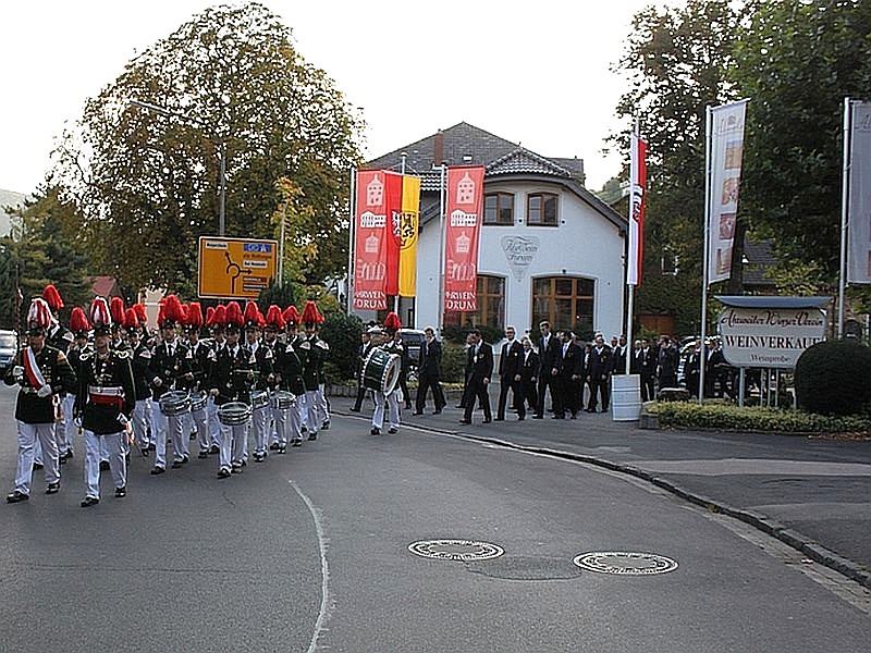 Seinen Ausklang fand das Fest anschließend im Festzelt am Ahrtor, wo zunächst die Tambourcorps der Bürgerschützen, der Junggesellen und der Aloisiusjugend in Gemeinschaftsleistung aufspielten. Dem Repertoire der schönsten Ahrweiler Schützenmärsche folgte dann "Oldie-Musik" der Band "Siegfried Service": Ein urgemütlicher Ausklang, wo man die vergangenen Tage bei einem kühlen Bier noch einmal Revue passieren lies. Ein gelungenes Festwochenende für die Junggesellen: Ein Fest von und für Ahrweiler ...