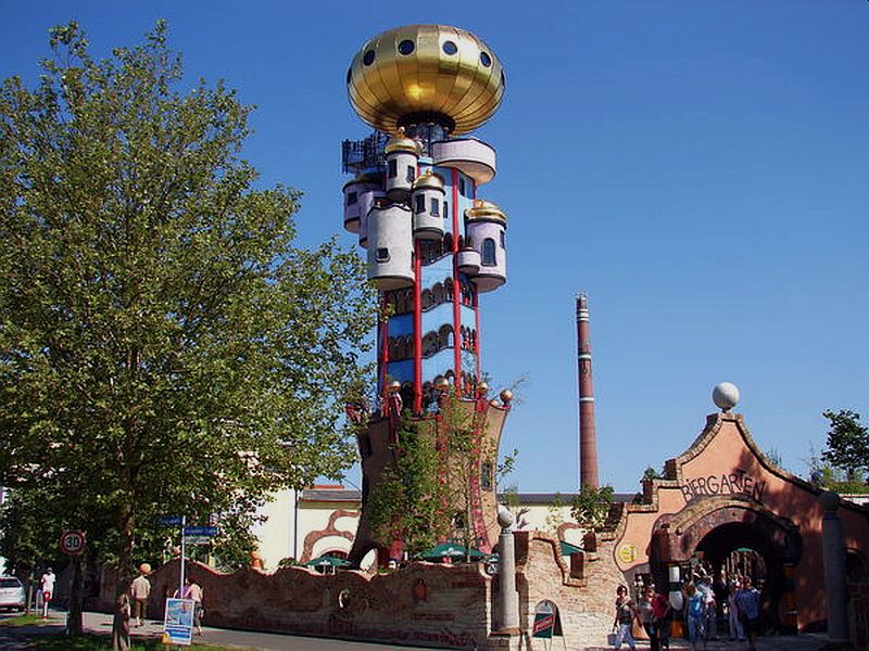 Wie gesagt - wenn man schon mal hier ist - dann gehört es zum Pflichtprogramm den Hundertwasser-Turm in Abensberg zu besuchen. Die Eintrittspreise sind mit ca. 12,00 €/Person relativ hoch, aber nichts desto trotz, ein Besuch lohnt sich wegen des Turms allemal! Mein Ziel war es natürlich - bei schönem Wetter - im bekannten "Biergarten", dazu ein gutes Kuchelbauer-Bier, eine gestandene Versper zu verspeisen! Es scheint schon eine verrückte Geschichte, wie der Kuchelbauer Chef und der Künstler Hundertwasser zusammenkamen. Das - und vieles anderes lernt man bei der Brauereiführung im "Biergarten" Kuchelbauer-Turm. Die Führung war sehr informativ und unterhaltsam. Es geht über viele Treppen und Stockwerke und ist in ca. 2 1/2 Stunden zu bewältigen. Es ist schon ganz was besonderes, der "Hundertwasser Turm" inmitten der bayrischen Landidylle. Ein bemerkenswertes Bauwerk, das der Bier-Unternehmer Salleck hier als Wahrzeichen für die Region gesetzt hat. Der Biergarten mit einem guten Weißbier nach Wahl und einer guten Brezn von der “Brauerei im Hundertwasser Look” werden jedem die Laune kräftig anheben.