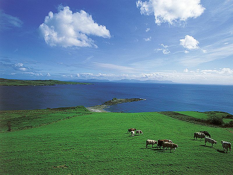 Es gibt in Irland zwar nur relativ wenige Wälder und Bäume, aber dafür sehr viel grüne Wiesen und mit Steinen eingezäumte Felder. Die Viehhaltung ist für Irland sehr wichtig, vor allem werden Schafe, Kühe und Pferde gehalten.